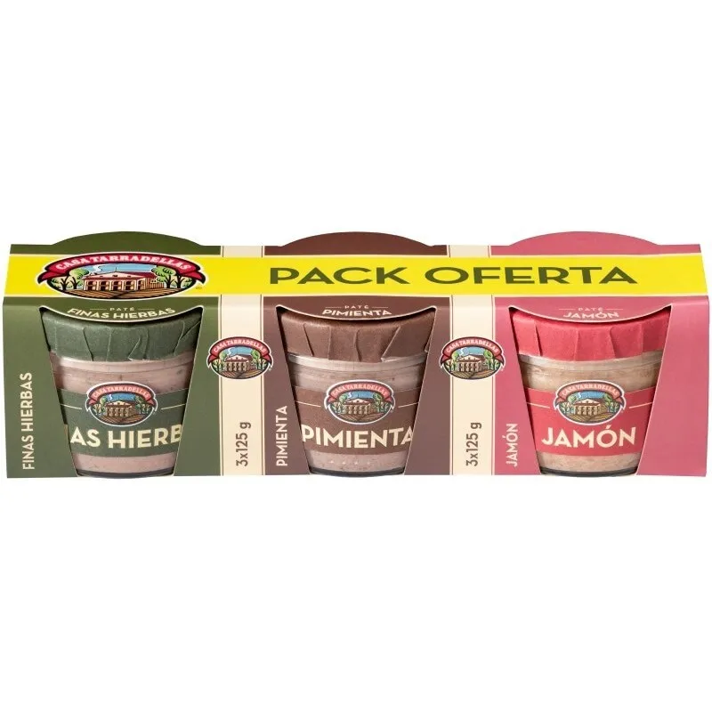 TARRADELLAS PACK 3 PATES (fh- pim-ja): producto profesional diseñado para el canal HORECA y colectividades. Ofrece una excelente relación calidad‑precio y está pensado para aportar rendimiento, consistencia y facilidad de uso en entornos de alta demanda. Ideal para hostelería, comercios, restauración, catering y suministro industrial. Distribuido por Pergal.